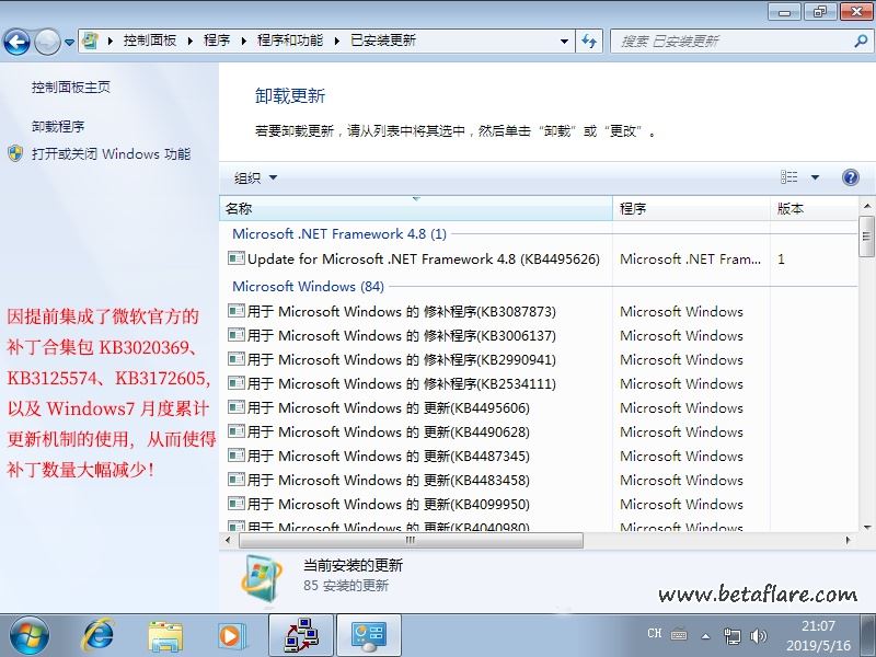 10、集成系统更新至2019年5月(约80+个),含 Windows7 SHA-2 补丁 KB4474419、KB4490628,含最新3389端口勒索漏洞补丁KB4499175;