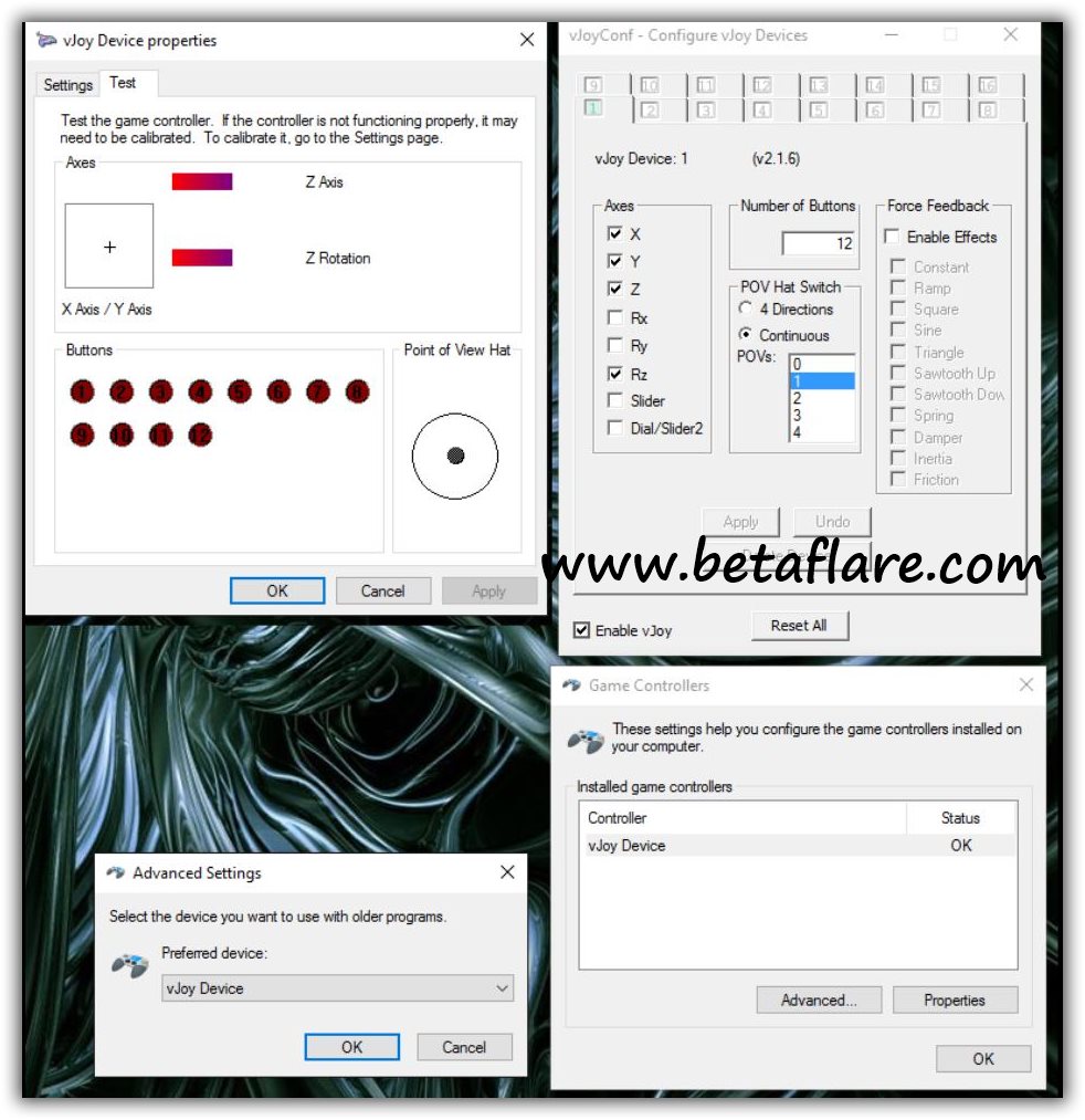 2、打开GPDSCK后,点击右边的Vjoy settings按键,X,Y,Z,Rz的钩打上,Number of Buttons填12,POVs选1