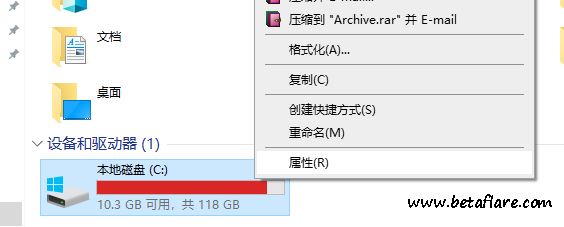 1、 在Win10中,打开“此电脑”,在系统盘(这里是c盘)上,右键单击,选择“属性”。