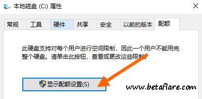 2、在属性页面,切换到“配额”选项,点击“显示配额设置”。