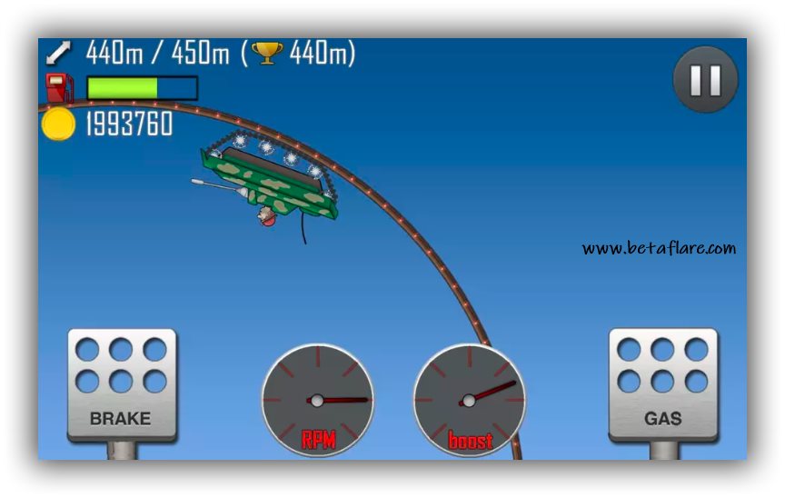 途中所收集的金币可以被用来提高车辆性能,最终,你能将车辆改造一辆无敌赛车。此外,还有5个不同的场景可以让你测试自己的爱车,包括北极、田野、沙漠以及月球。