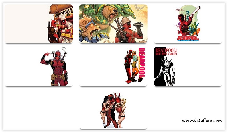 Nirvana专辑’Nevermind’,Galactus,几部电影海报的搞笑和动作包装模仿。也具有其他角色,如金刚狼,X-23,Cable和蜘蛛侠。类似于Deadpool电影和游戏主题。