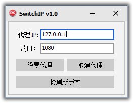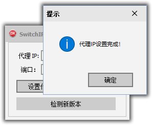 打开SwitchIP,在“代理IP”处填入ip地址,“端口”处填入端口。确认无误后点击“设置代理”。