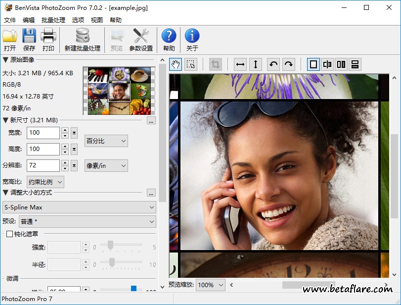 PhotoZoom Pro按官网介绍可以渲染出完美的放大照片,呈现无与伦比的画质效果。拥有屡获殊荣的 S-Spline 技术,使用它您可以创建出锐利清晰的放 大图像,避免锯齿状边缘、模糊细节以及不自然的人工效果。