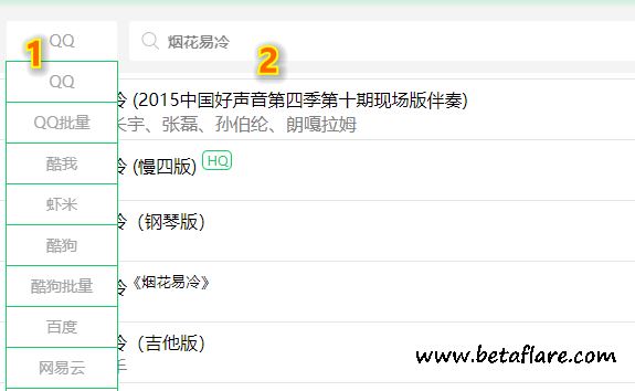 2、选择完毕后,在搜索框输入要试听下载的歌曲。回车后会显示出搜索结果。
