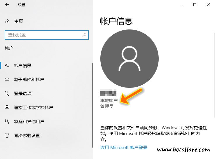 在“Windows 设置”里查看您的Windows 10帐户是Microsoft帐户还是本地帐户