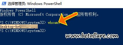 打开PowerShell:右键“开始按钮”,点击“Windows Powershell(管理员)”。然后在PowerShell中键入whoami并按键盘上的Enter键。此命令显示“短”用户名为desktop-XXX\后面的部分。记下它。