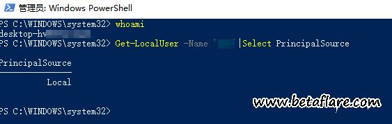 Get-LocalUser -Name ‘Username’|Select PrincipalSource