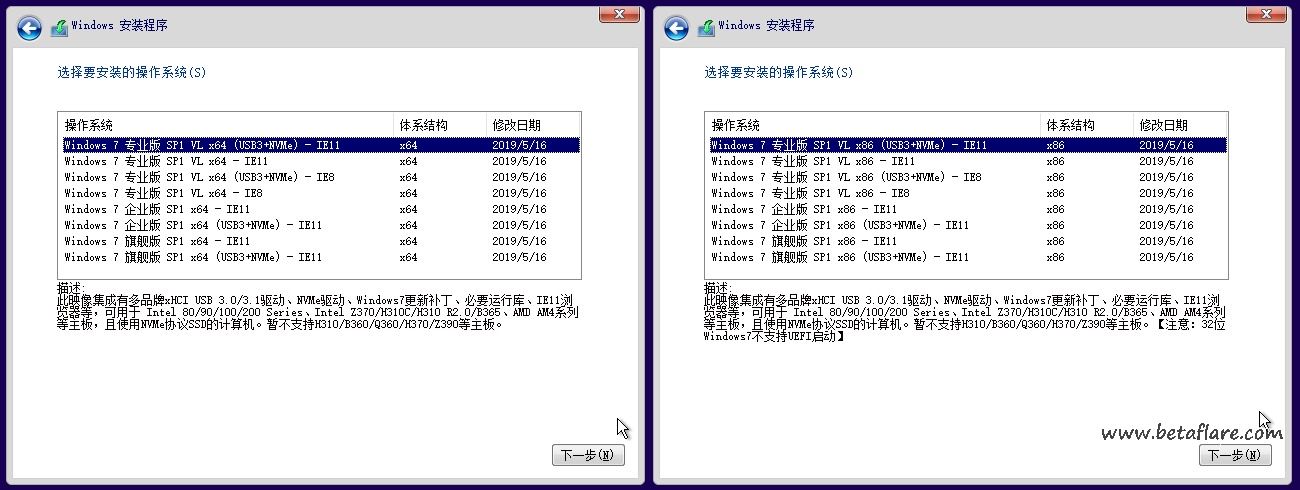 1、含已集成/未集成 xHCI USB3.x / NVMe 驱动的映像版本,含IE8/IE11浏览器的映像版本),可以根据硬件差异及自身需求合理选择版本安装。