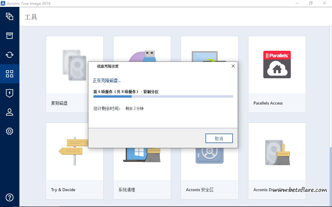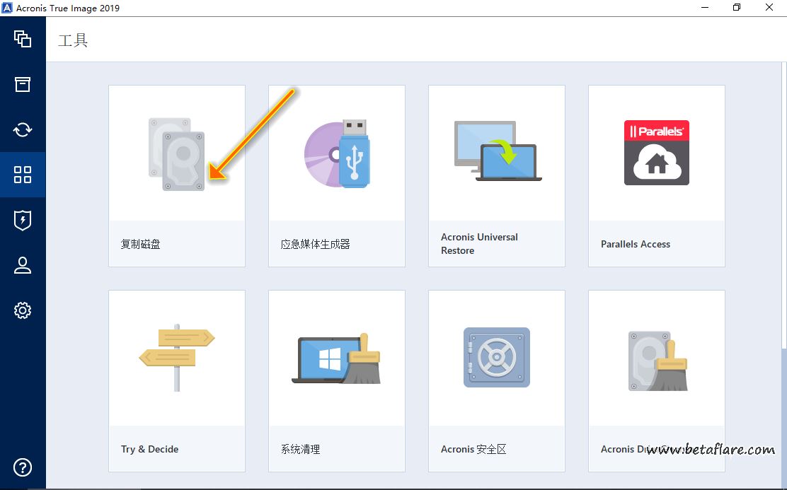 1、打开「Acronis True Image」,切换到「工具」。点击「复制磁盘」。