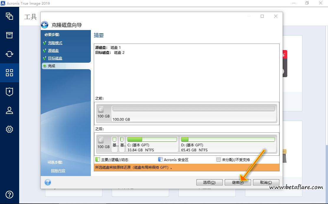 Acronis True Image除了常用的Windows系统的备份和还原之外,还可以对磁盘进行复制对拷操作,系统上所有的系统程序、应用程序和数据将复制到新的硬盘。新的磁盘与旧磁盘完全相同,并且保留系统可启动性。