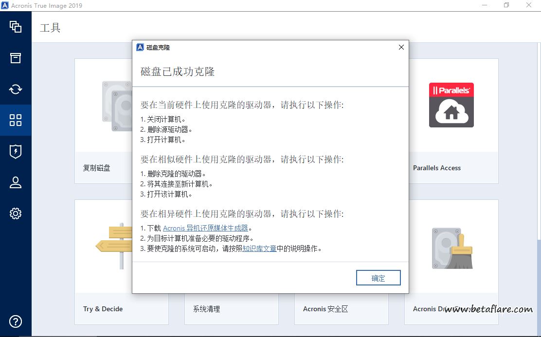克隆后的硬盘可以在在当前硬件、相似硬件或者相异硬件上使用。