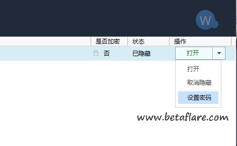 3、为隐藏的文件再加一层密码。在「已隐藏」的文件右边,「打开」下拉框,点击「设置密码」