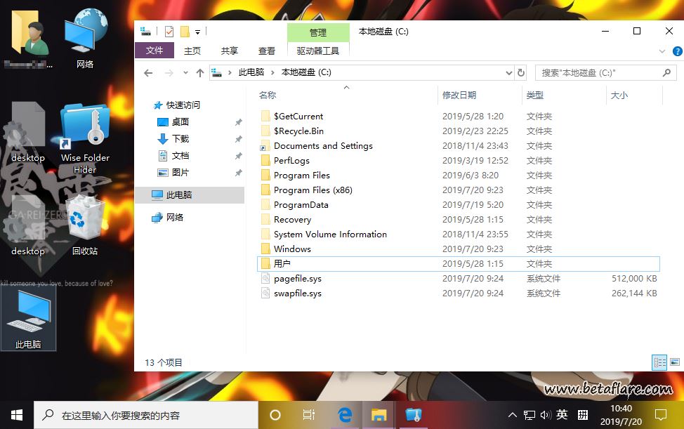 3、返回桌面,查看C盘和桌面上使用WiseFolderHider隐藏过的文件是否有显示?