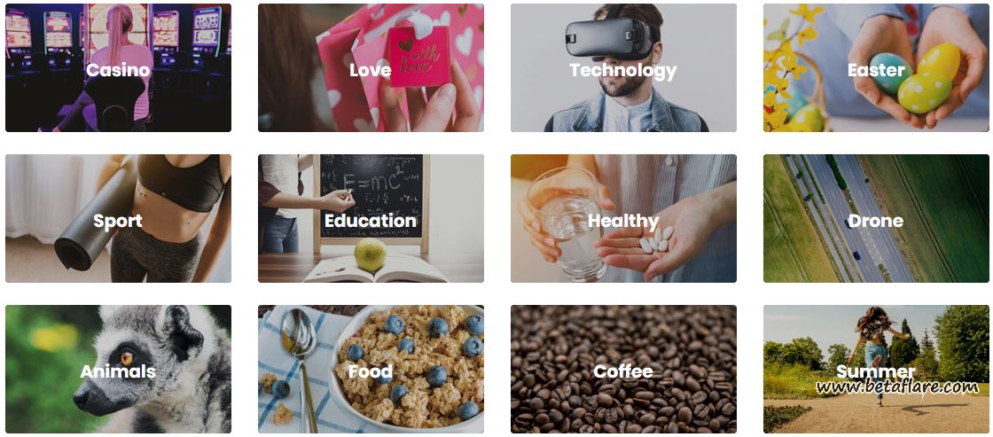 再往下可以看到该图库网站的分类,看图片类型一共分为12大类,但是点击下方的「All Collections」可以看到更多的具体分类,多大42大类别。可以在这些更细的图片类别上找到我们需要的图片素材。