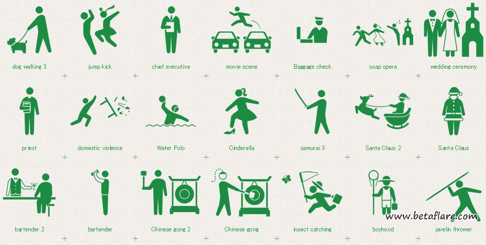 Human Pictogram 2.0是由TopeconHeroe 出品一个专门提供人类PNG 象形图像的图库,可以说是目前市面上最完整的人像图库。它拥有海量丰富的人体图像,从人体的各种场合、动作、运动到行为,几乎都应有尽有,提供的图像格式有ai、png 及jpg,我想大家可以在这里找到自己想要的所有人体图像不夸张。