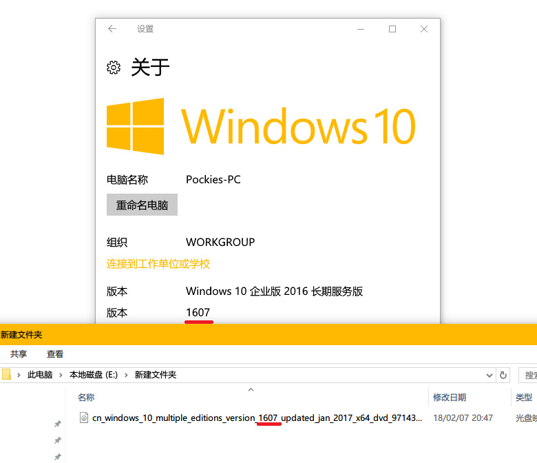 准备一个与你LTSB版本号和语言相同的普通版Win10镜像(比如我的版本号是1607,x64系统)。