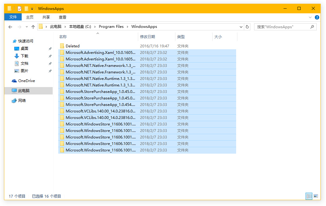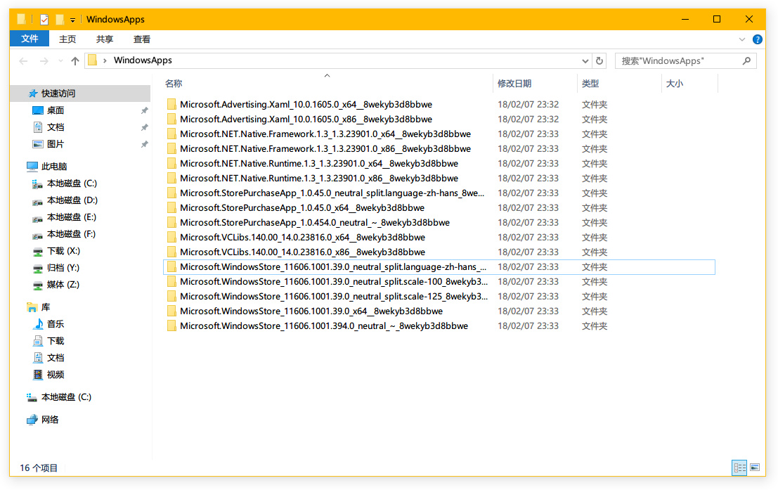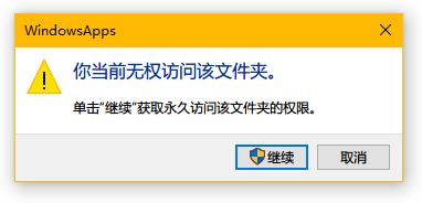 双击 WindowsApps 文件夹,弹出权限提示,点“继续”获得权限,进入 WindowsApps 文件夹,把前期准备提取出来的所有文件放进去。