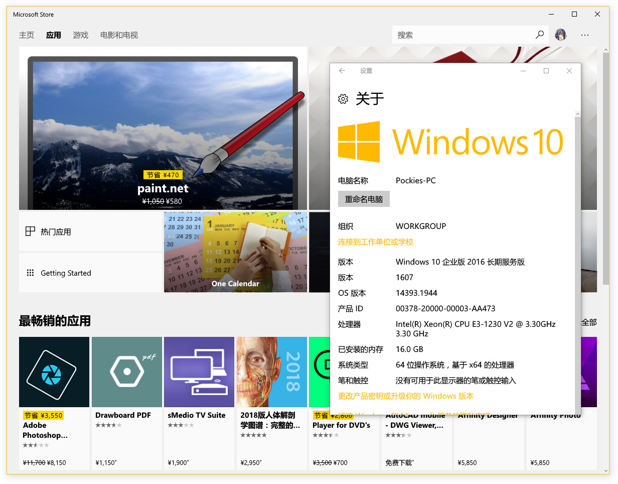 然后你就拥有了可以从Microsoft Store完美安装/运行/更新UWP应用的LTSB版Win10。