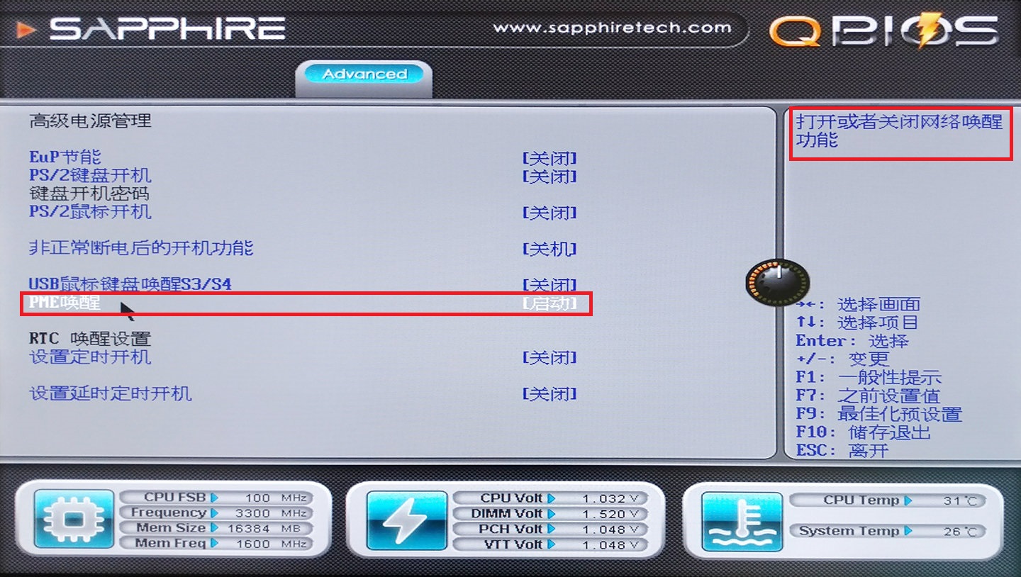 相关设置一般包含“PME” / “Wake on Lan” / “WoL”等字眼,如果找不到,请阅读主板说明书或者直接Google。