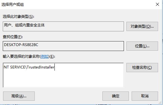因为TrustedInstaller组的真正名字是NT SERVICE\TrustedInstaller,只输入TrustedInstaller无法完成命令。在选择用户或组的窗口中输入NT SERVICE\TrustedInstaller即可查询到此组,然后按照上面的步骤就可以修改权限了。