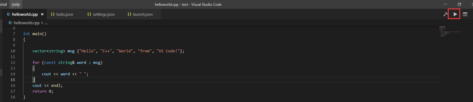 #include <iostream>#include <vector>#include <string>using namespace std;int main(){vector<string> msg {"Hello", "C++", "World", "from", "VS Code!"};for (const string& word : msg){cout << word << " ";}cout << endl;}