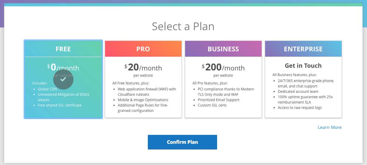 CloudFlare选择方案免费