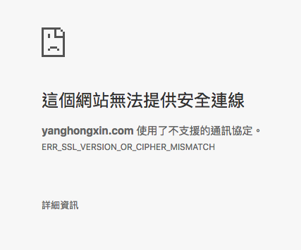 - 检查设定有没有错误,参考:「Troubleshooting SSL errors」