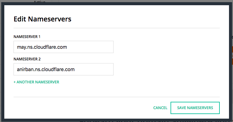 把网域的 Nameservers 改成 CloudFlare 提供的 Nameservers(DNS 页签往下翻),这样一来,刚刚在 CloudFlare 设定的 DNS 才会生效。