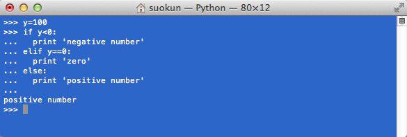 注意elif部分,注意条件后面加冒号。其它语言中switch 或 case 语句可以用if…elif…elif…语句组来实现。