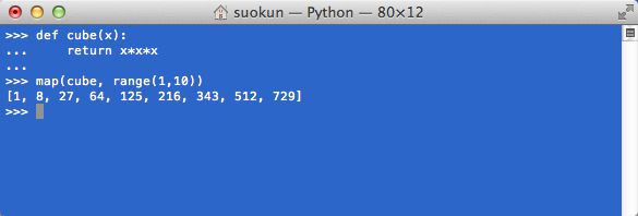 map(函数f,序列A),对序列A中的每个数,进行函数f的操作。