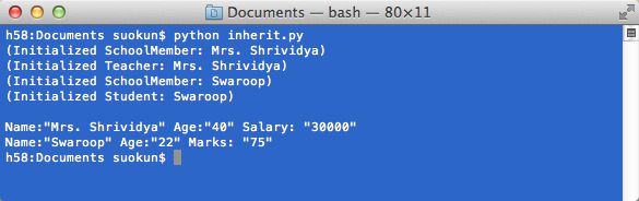 SchoolMember类被称为基本类或超类 。而Teacher和Student类被称为导出类或子类 。