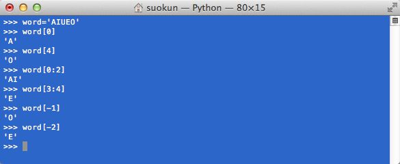 Python的字符串部分操作,类似于数组;同时允许负数存在:
