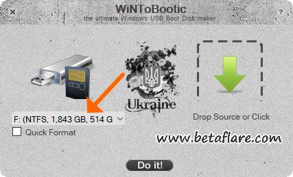 3、WiNToBootic有格式化的选项,如果需要格式化闪存驱动器,则勾选「Quick Format」,否则不勾选。