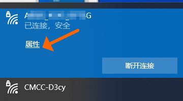 2、找到刚刚连接到的WIFI,并点击该WIFI名称下的「属性」。
