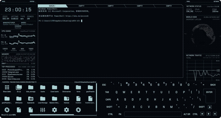 另外在按键时还有音效!非常棒!如果你是经常使用PowerShell等终端,eDEX-UI再适合不过了。