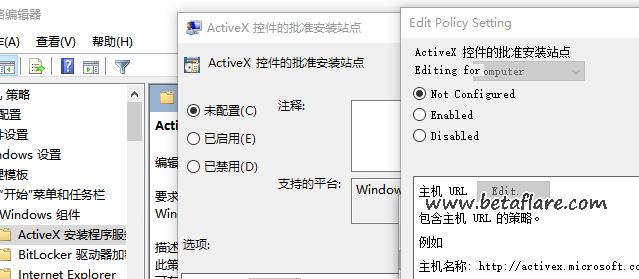 依次打开「Windows 组件」「ActiveX 安装程序服务」,在右侧选择「Activex 控件的批准安装站点」
