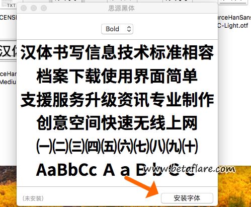 1、安装思源黑体中的「SourceHanSansSC-Bold.otf」加粗形态。
