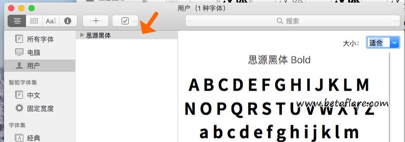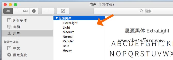 MacOS会自动安装好字体,显示在用户栏这一位置。