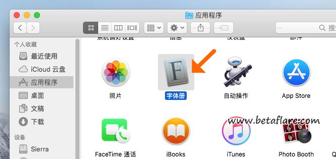 2、依次进入应用程序-》字体册。