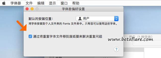 勾选“通过将重复字体移到废纸篓来解决重复问题”,如图所示。