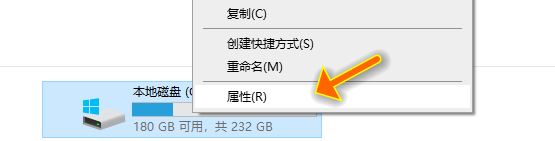 2、在C盘(Win10系统安装的盘符)上,右键“属性”。