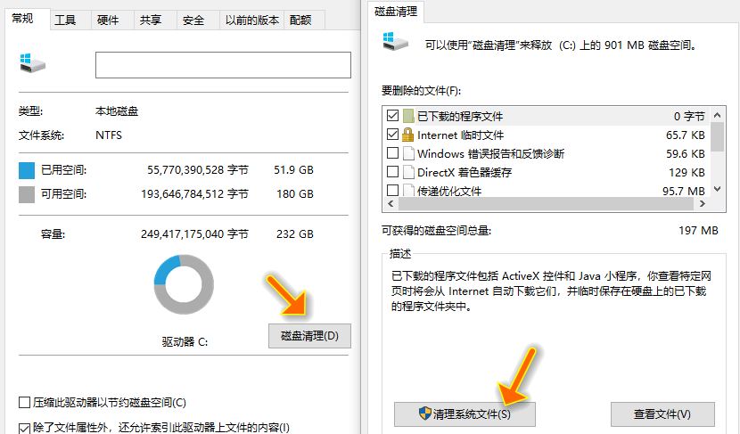 3、依次选择“磁盘清理”-》“清理系统文件”。