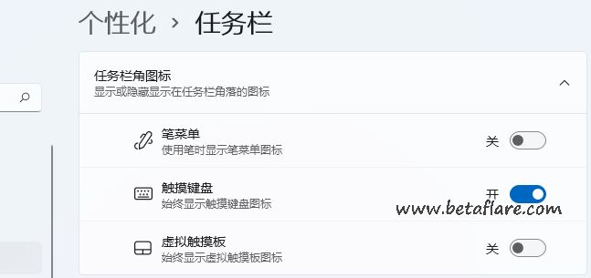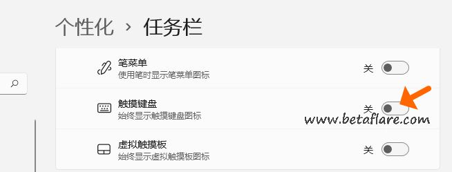 如果你想在Windows 11中关闭触摸键盘,以上面同样的方式进入任务栏设置中关闭触摸键盘的开关。