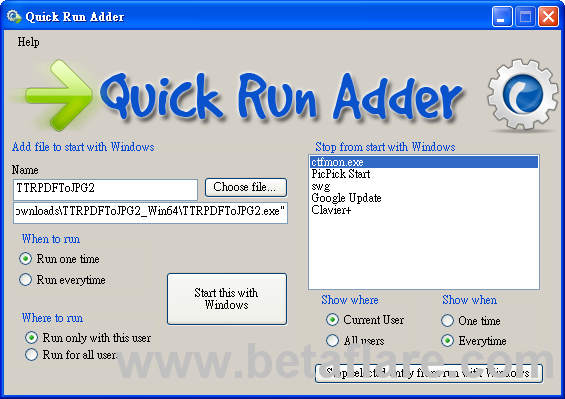 将程序加入开机启动项工具 Quick Run Adder 1.0