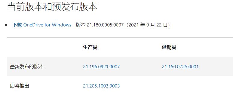 点击然后进入OneDrive 发行说明页面,在当前版本和预发布版本