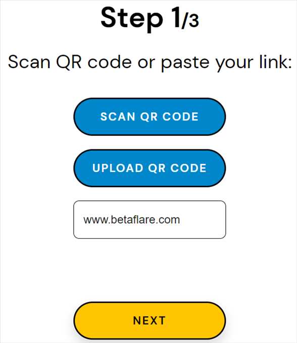 我这里重新开始制作二维码的,因此在下面的框框中输入扫描后二维码要访问的链接,比如“www.betaflare.com”,然后选择“NEXT”。