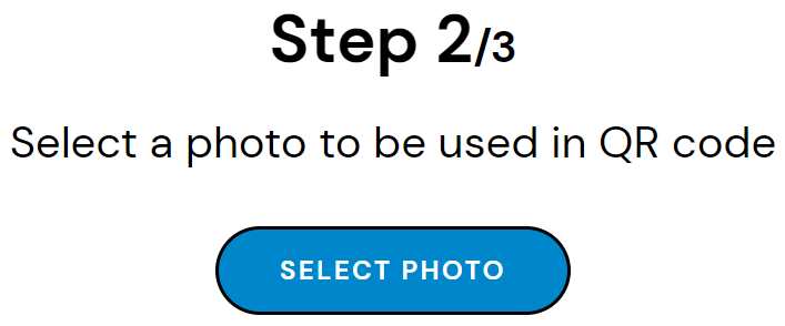3、选择“SELECT PHOTO”上传一张包含个人头像的照片,等待图片上传处理进程(处理时间受网络和图片大小影响),QRtoon将自动提取出照片中的头像,并将头像放在二维码的中间。