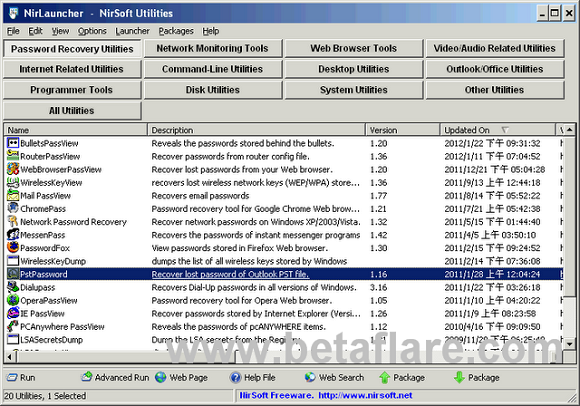 NirLauncher 虽然是英文的界面,但是很容易理解,这里更新了其最新的版本供大家下载,非常推荐。
