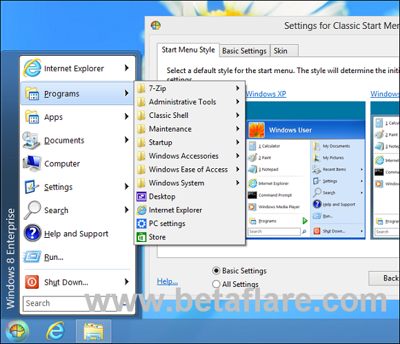 Classic Shell 是一个免费开源的开始按钮替换器,它可以设置皮肤选项,有win7\vista\xp\200\98的皮肤可供选择。
